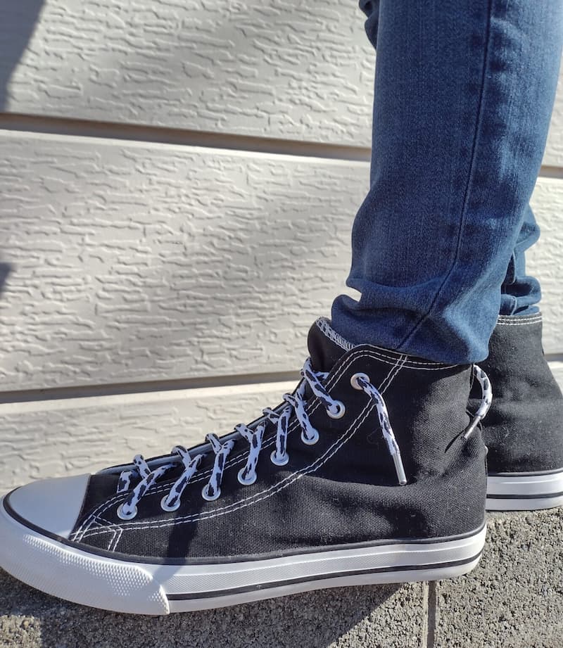 丸ひもの形状と5~6mmの幅は、幅広いスニーカーデザインに対応しています。シューレースの太さが適切な幅であるため、スニーカーの穴にしっかりと通しやすく、調節もしやすいです。