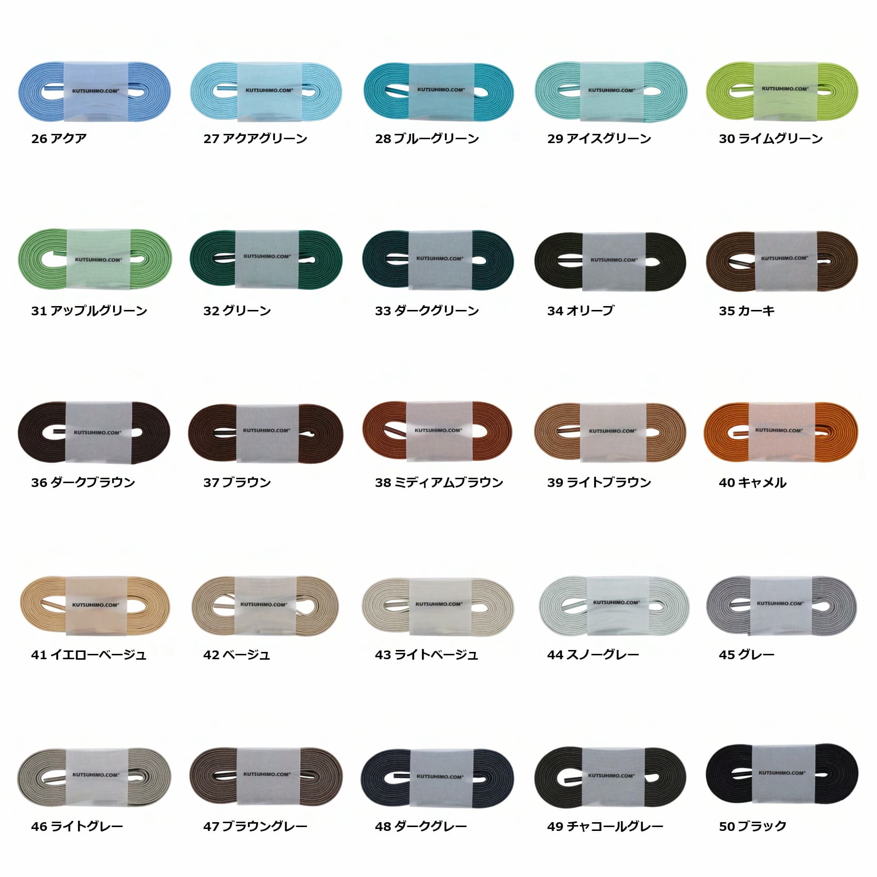 また、50色の豊富なカラーバリエーションが用意されており、自分のスニーカーや革靴のカラーリングに合わせて選ぶことができます。さらに、プラスチックセルで先端加工されているため、取り付けも簡単で、長さ調節も自由自在です。