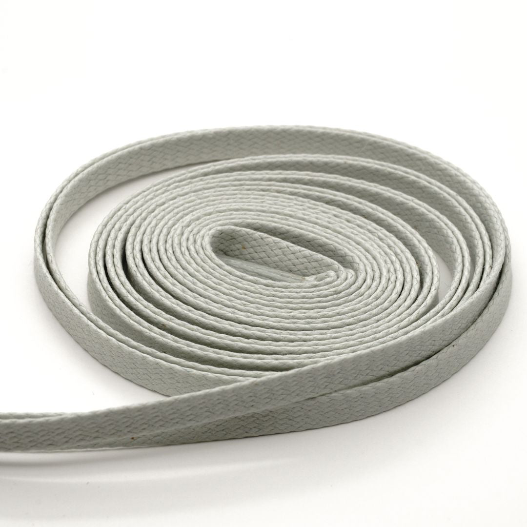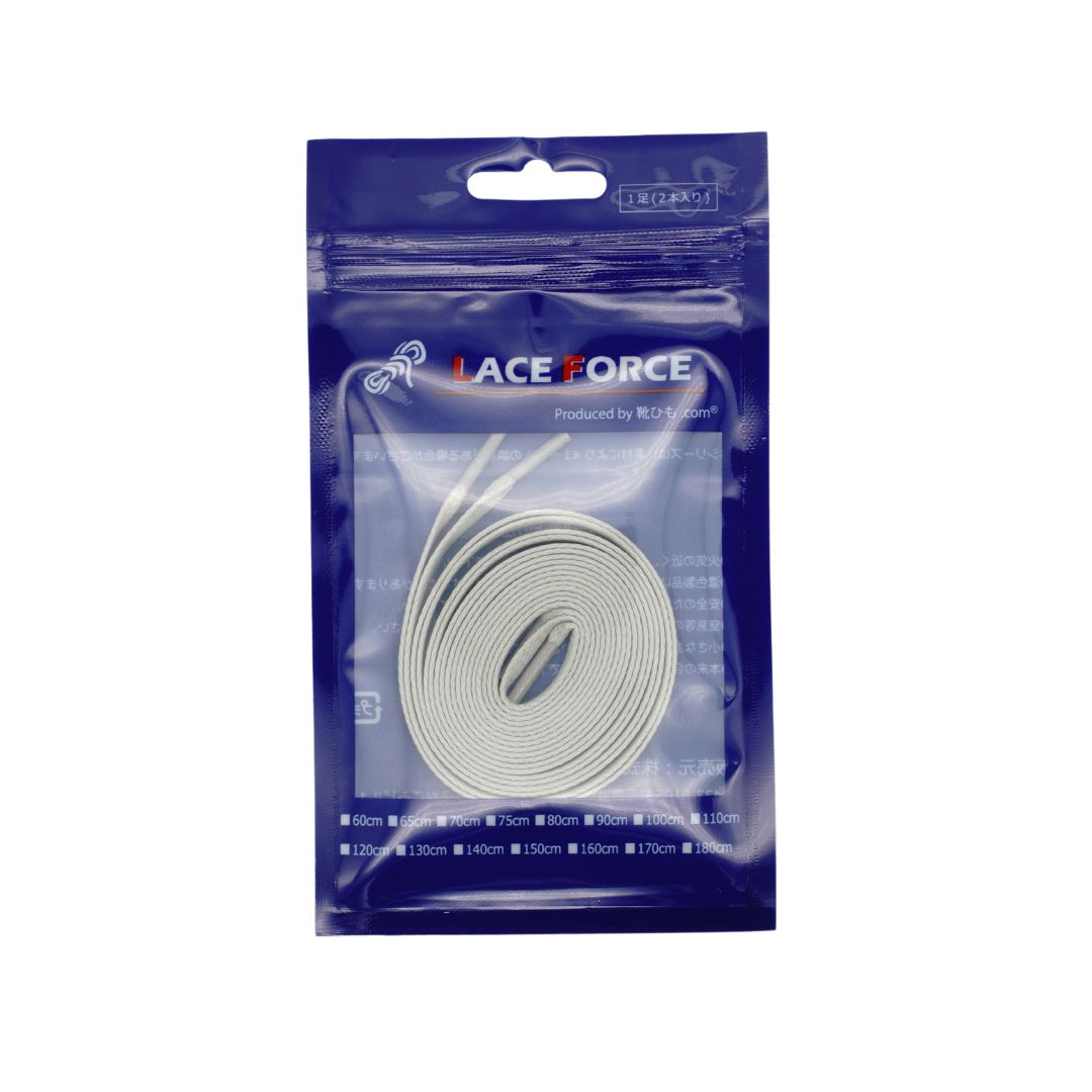 【LACE FORCE】ロー引きコットン・704-L・平・編目・5.5mmは、カジュアルな革靴やスニーカーに最適なシューレースです。このシューレースは、ロー引きのコットン素材を使用しており、幅が5.5mmと太めのデザインです。